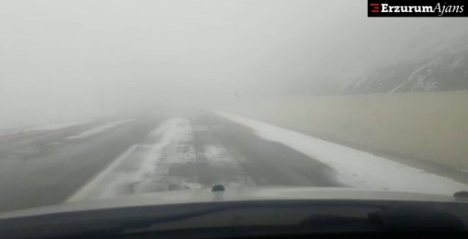Erzurum-Tekman karayolunun sağlandığı bölgede sis görüş mesafesini 10 metreye kadar düşürdü. Sürücüler buzlanan yolda ilerlemekte güçlük çekti. İHA