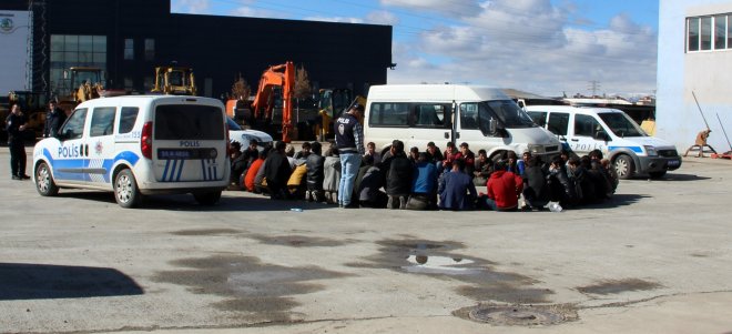 Kaçak göçmenler belediye otobüslerine bindirilerek adli işlemleri yapılması için polis merkezlerine götürüldü.