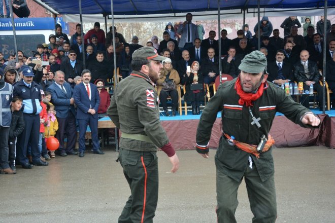 Etkinlikte Aşkale’nin Kurtuluşu temsili olarak canlandırıldı. Davetliler bu esnada duygu dolu anlar yaşandı.