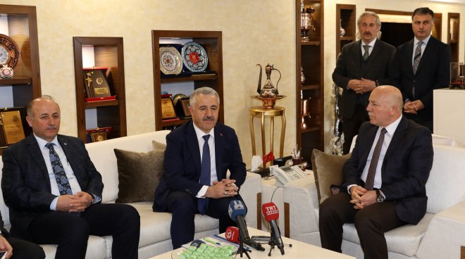 Ulaştırma, Denizcilik ve Haberleşme Bakanı Ahmet Arslan, Erzurum Büyükşehir Belediyesi’ni ziyaret etti.