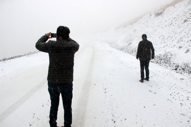 Palandöken Dağının arka kısmında yer alan Tekman yolunda ise adeta kara kış yaşandı. Kar kalınlığının bazı kesimlerde 5 santimetreye ulaştığı güzergahta sürücüler ilerlemekte güçlük çekti. Kış aylarını aratmayan manzaranın yaşandığı güzergah İHA ekibi tarafından drone ile havadan görüntülendi.