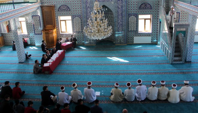 Kuran-ı Kerim tilavetiyle başlayan yarışma öğrencilerin sırayla minbere çıkarak hutbe vermesiyle devam etti.