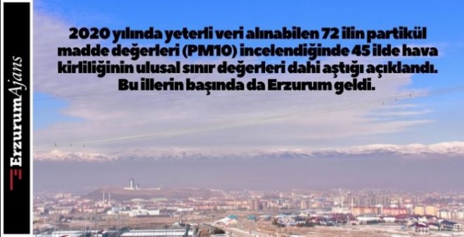 Rapora göre 2020 yılında PM2,5 ortalaması en yüksek il arasında Erzurum 3’üncü sırada yer aldı. Raporda şöyle denildi. “2020 yılında tüm illerde ölçüm yapılamamış olması, tüm illerdeki hava kalitesinin bütüncül olarak değerlendirilmesini engelleyen büyük bir eksikliktir. Yeterli veri olmayan 42 ilde, Türkiye’deki illerin yarısından fazlasında, kanserojen bir kirletici olduğu bilinen ve bu nedenle sağlık etkileri açısından gösterge olan ince partikül madde değerleri bilinmemektedir. Yeterli PM2.5 ölçüm verisi (yılda ? gün ve üzeri) 39 il arasında, özellikle Düzce’de yıllık ortalamanın, DSÖ’nün yıllık kılavuz değerlerinin 4 katından daha fazla olduğu görülmektedir. Düzce’yi Çorum, Erzurum, Amasya, Konya, Sakarya, Iğdır, Bursa, Isparta ve Burdur takip etmektedir. 2020 yılında, Türkiye’deki 81 ilin yarısından fazlasında, PM2.5 seviyesi hakkında yeterli veri bulunmamaktadır.”