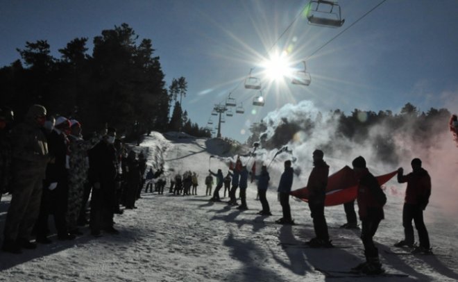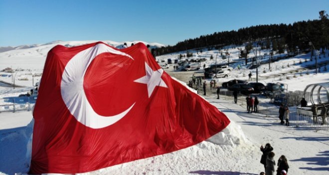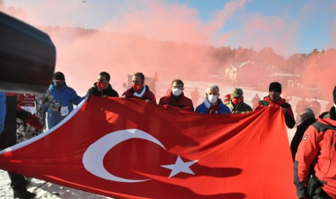 Konuşmaların ardından 106 yıl önce Sarıkamış Harekatı’nda şehit düşen Mehmetçikleri anmak için Jandarma Arama Kurtarma (JAK) timi Türk bayrağı ve meşalelerle Cıbıltepe Kayak Merkezinin 1. etabından kayarak oteller bölgesine geldi.