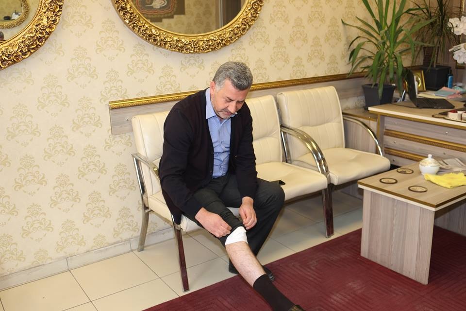 Yaralı diziyle Oltu Devlet Hastanesine giden Muhsin Şimşek’in dizine 6 dikiş atılırken, 4 gün iş göremez raporu verildi.