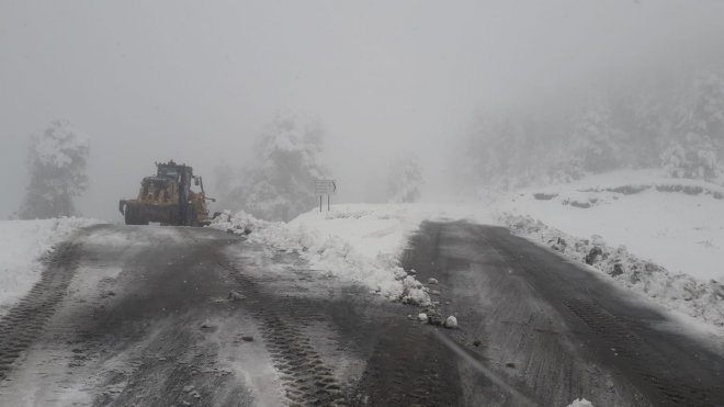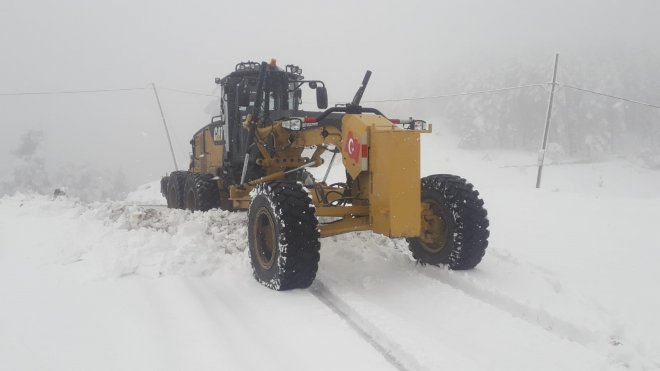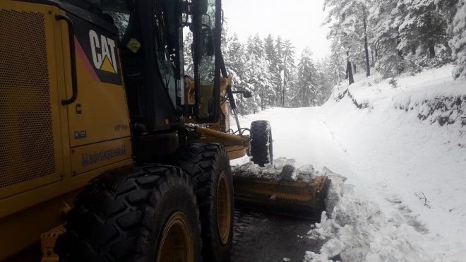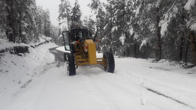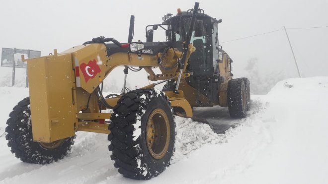 İlçeyi birçok mahalleye bağlayan Köroğlu mevkisinde kardan kapanan yol ile 8 mahalle yolunu iş makineleriyle açan ekiplerin tuzlama ve kar temizleme çalışması sürüyor.