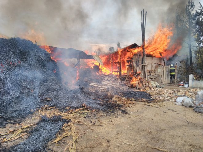 İlçeye bağlı Sarısaz Mahallesi'nde, Şahset Ediz'e ait samanlık ve kilerde henüz belirlenemeyen nedenle yangın çıktı.