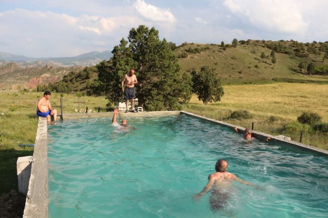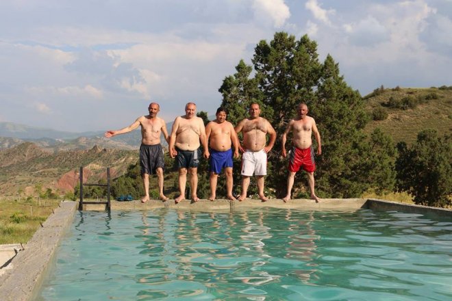 Oltulular, ormandan gelen içilebilir temiz berrak suyla dolu olan havuzun keyfini doyasıya çıkardı.