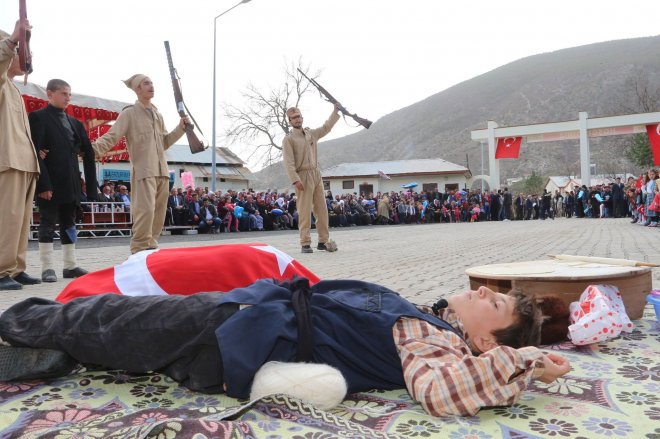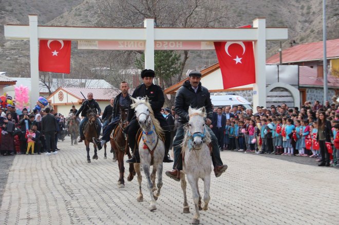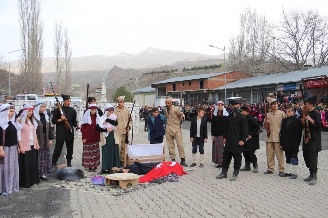 Olur’un düşman işgalinden kurtuluşunun 100. yıl dönümü münasebetiyle yapılan kurtuluş programında halkın göçü temsili olarak canlandırıldı.