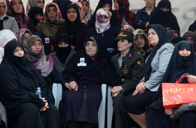 Cenaze törende şehit yüzbaşının yakınları güçlükle ayakta durabildi.