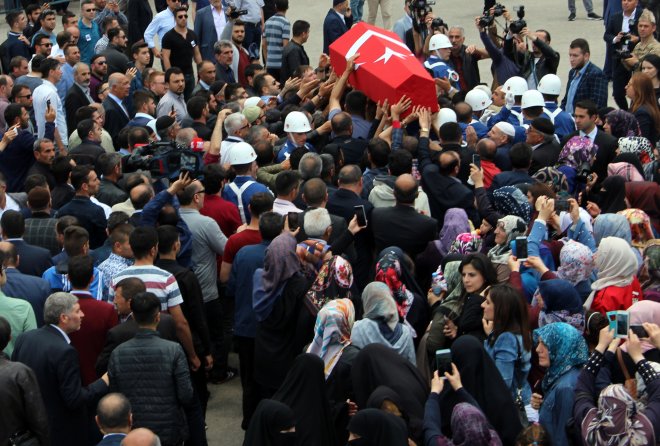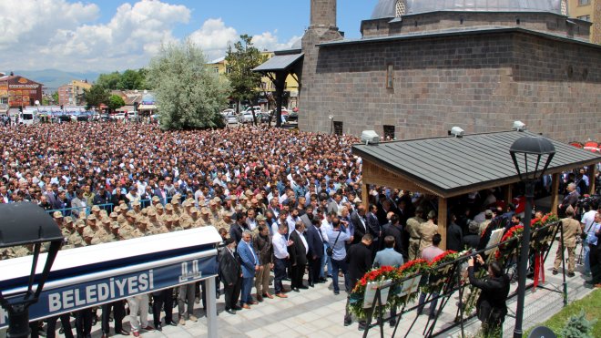 Törene katılan on binlerce Erzurumlu, şehit için dua ederek teröre lanet okudu.