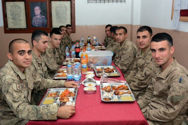 İftar yemeğinde er ve erbaşlarla tek tek sohbet eden Vali Azizoğlu, kahraman Mehmetçik ile birlikte iftar açmanın memnuniyetini dile getirdi.