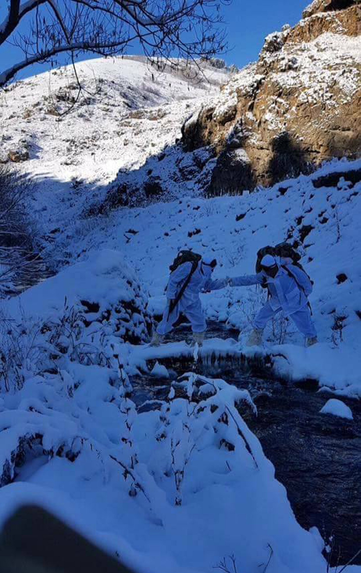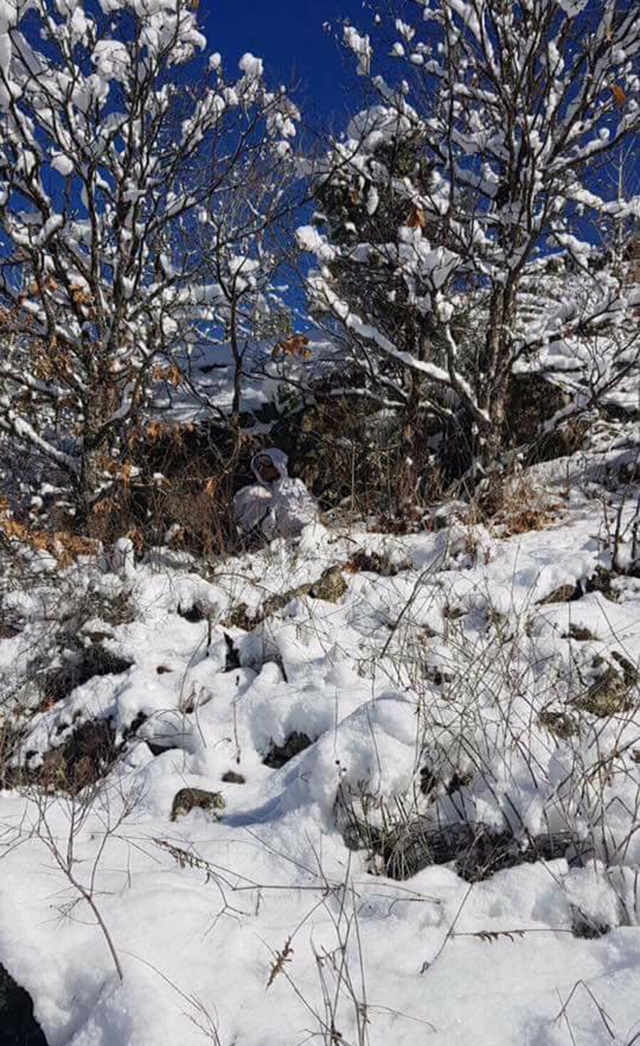 Eksi 20 dereceyi bulan soğuk havada icra edilen operasyonda ele geçirilen malzemeler ve sığınak imha edildi.